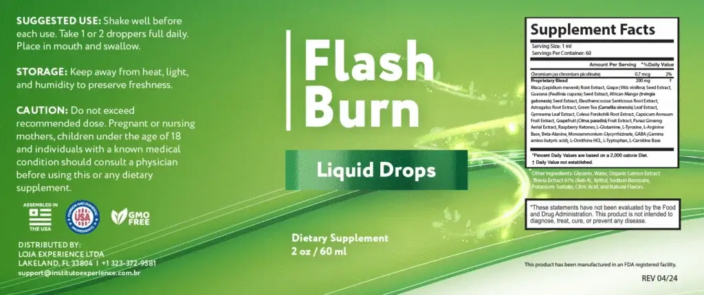 Try Flash Burn: a supplement with ingredients and nutrients that promotes weight loss.